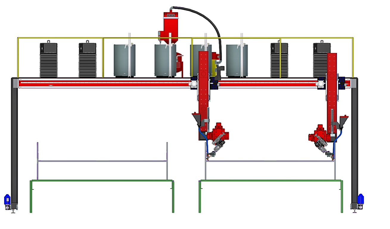 - A cable support is provided on gantry frame to manage all cables and hoses required for each welding head